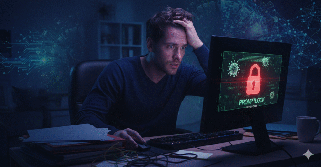 O PromptLock é um tipo de malware (software malicioso) que sequestra arquivos do seu computador e pede um resgate para liberá-los. O que o torna especial é que ele utiliza inteligência artificial para criar seus próprios códigos maliciosos em tempo real, como se fosse um programador trabalhando 24 horas por dia para causar o máximo de dano possível.